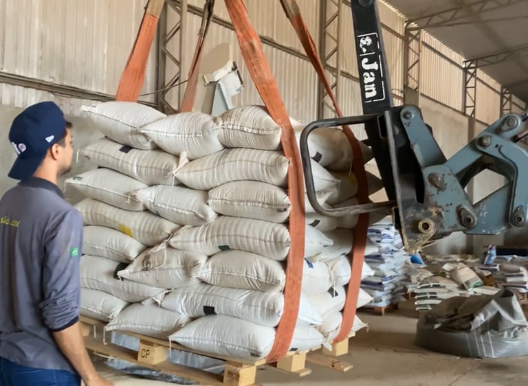Após a aprovação do cliente, realizamos a mistura dos insumos de forma minuciosa, seguindo rigorosamente a formulação estabelecida. Em seguida, efetuamos o embalamento e a padronização em paletes, facilitando a logística de entrega ou coleta.